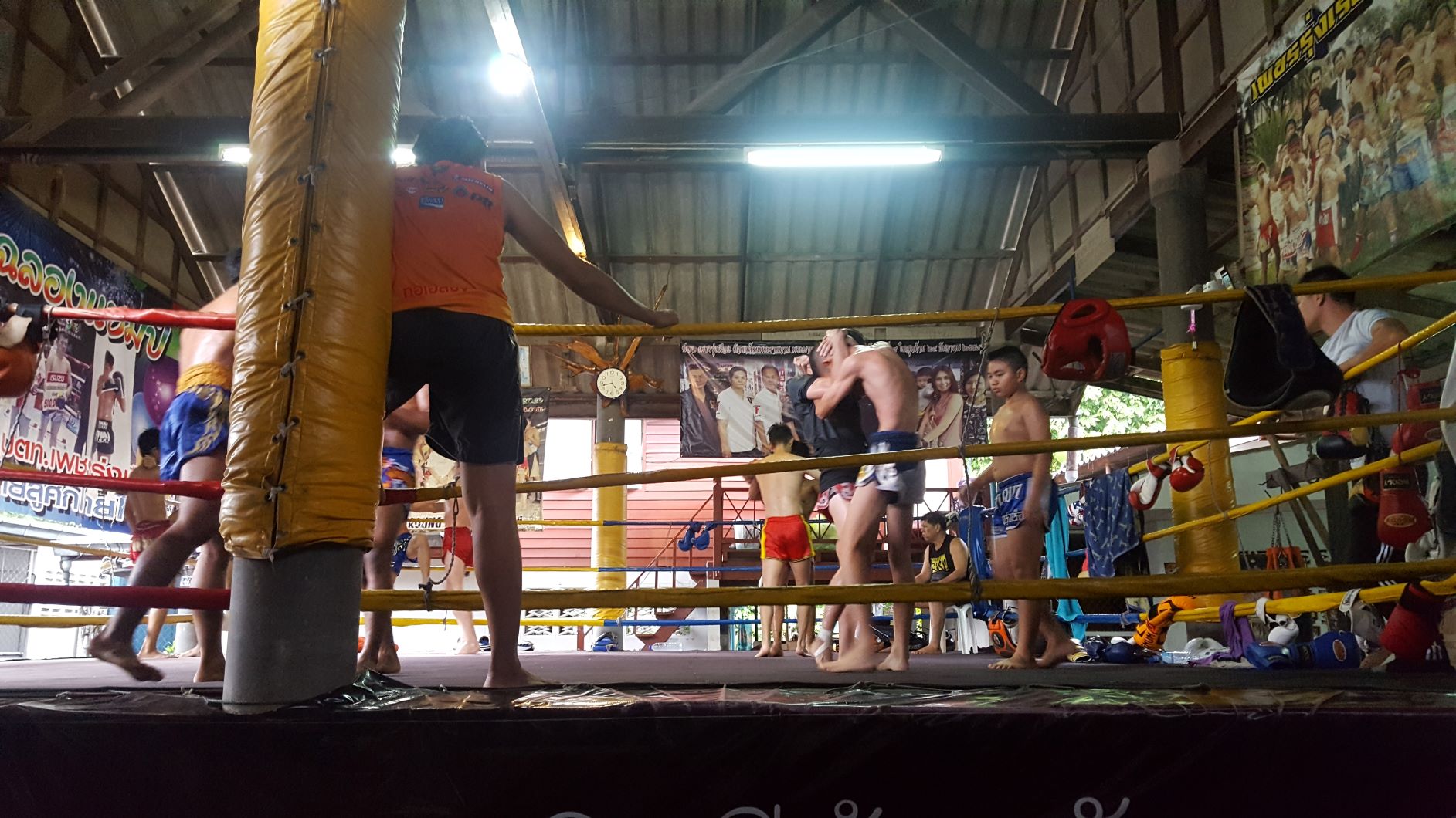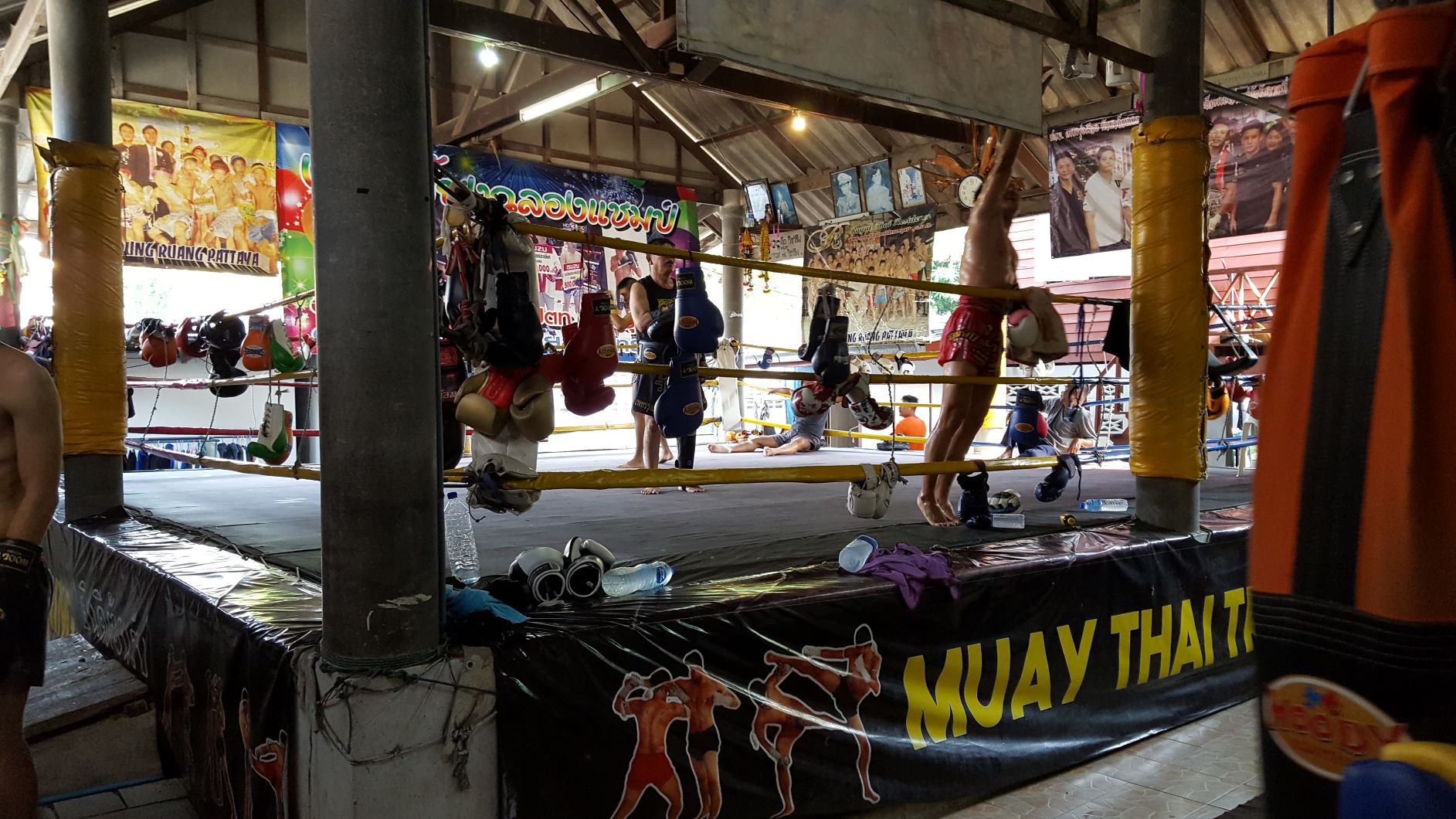 Petchrungruang is a traditional muay thai gym in Pattaya, established in 1986. It is located in an alley off of the main (Sukhumvit) road in southern Pattaya. If you are driving from the south, you should see a sign for the gym at the intersection of the alleyway and road. Similar to Keatkhamtorn gym, the gym raises children from a young age to become stadium fighters. The gym definitely has a family/close knit atmosphere. I first heard about this gym from Sylvie von Duuglas-Ittu, who trains here. While I was in Pattaya, I would often do morning sessions at Winner Muay Thai then head over to Petchrungruang in the afternoons. The training was tough and there were many strong younger thai fighters there. There were also a fair share of foreigners of differing backgrounds/experience, mainly Russian and Italian. The afternoon training started at around 3pm. I'd arrive, pay for my session then set my stuff in the weightroom which was adjacent to the main training area containing the bags and rings. The gym contained 2 rings (one main and one smaller), a couple of heavy bags, tires, and other various training gear. The main area is in a somewhat open air environment but the weight room is mostly enclosed. The weight room also included a matted area, which served as a warmup/cool down space. It was the perfect place to apply some nanman muay oil (hot and stuffy). I would begin the session with some shadowboxing, jumprope, and tire jumps. Then I would grab any available bag, waiting for a trainer to call me up for padwork. Padwork was either with Kru Nu (the owner) or Kru Den. I often went with Kru Den. He kept it pretty basic, but it was exhausting. Something about the way the trainers held the pads; you would really have to kick with good technique and follow through with each strike to feel a good impact. I usually got 3-4, 4 min rounds. Afterwards was usually clinching. Like other traditional thai gyms, clinching is emphasized and the clinching sessions are long. All the boys I clinched with were very strong and had incredible clinch locks. The sessions usually ended with some conditioning such as pushups, situps, and pullups. Occasionally the gym would do these "mock" fights, which consisted of 2 fighters sparring at nearly 100% (with large gloves/shinpads). They would try to recreate the atmosphere of a real fight by having corners, a referee, gamblers and audience members. It would get pretty wild and was very entertaining to watch. I could definitely see the benefit of this for those having upcoming fights. Overall, if you want an authentic training experience in Pattaya, I believe Petchrungruang would be a good choice. The training is intense but they cater to everyone; from fighters to those looking to get in shape. Most of the younger fighters were fighting on Lumpinee/Rajadamnerm cards, and some of the foreigners there were fighting on MAX. However, if you are a larger fighter, one thing to note is the majority of thai fighters there were probably around 65 kg and less. Nonetheless, you could get some very good training in.