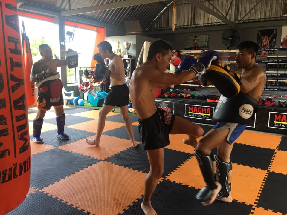 Winner Muay Thai is a newer gym in Pattaya. It is run by Luktum (Tum) Sityodtong (now Winner Muay Thai) and Kru Noi Sityodtong. It's located not too far from Sityodtong Camp, about a 5-10 motorbike ride away in the outskirts of Pattaya city. I first heard of Tum when he began fighting in the American promotions such as Lion Fight (vs Gaston Bolanos) and Triumph Kombat (vs Onjen Topic). Apparently he is/was pretty active in promotions around the Southeast Asian/Oceanic region. The gym is an extension of Kru Tum's and Noi's home. It's a family atmosphere, and you'll see Tum's wife and kid occasionally roaming around the mats. Everything is relatively new and clean. The gym seems more or less unknown at the moment; only one other student from Australia was there when I showed up. I opted to do morning sessions at Winner then afternoon sessions at Petchrungruang or Sityodtong. The morning training starts at around 8am. I would get some km in a park nearby before showing up for training. Tum would sometimes be running with the other student as I arrived. Training began with a warmup of either tire jumps or rope skipping. Then shadowboxing would commence. Tum was observant and gave pointers/things to focus on for each session. Next would be a couple rounds of bagwork (mainly alternating kicks, skip knees, and teeps). After bagwork came 5 rounds of pads with either Tum or Kru Noi. Padwork was always fun with Tum. He is high energy and has some tricky techniques in his arsenal. A lot of fakes and defensive maneuvers. Similar to Sityodtong gym, the first three rounds usually included all techniques while the last two rounds focused on clinching/knees or boxing/low kicks. Afterwards Tum would show us some techniques to drill on and sometimes spar/clinch with us. He is a beast in the clinch. Overall, I enjoyed training at Winner Muay Thai. It was like getting a private with Tum every session. He has a wealth of knowledge and a cool style. His style seems to incorporate more footwork and boxing than traditional muay thai. I recommend this gym for people looking for more individual training sessions, and if you want to train with Tum. Since it is relatively unknown at the moment, you won't get much sparring/clinching partners. Kru Tum and Kru Noi sometimes stagger the training sessions because they are the only trainers and can handle only 2-4 students at a time. The gym also seems to cater to the local community. If you're looking for an "traditional" muay thai camp or a "fighters" gym, this gym likely isn't for you, but if you prefer more individualized attention and want train with a great fighter like Tum, it's worth a visit.