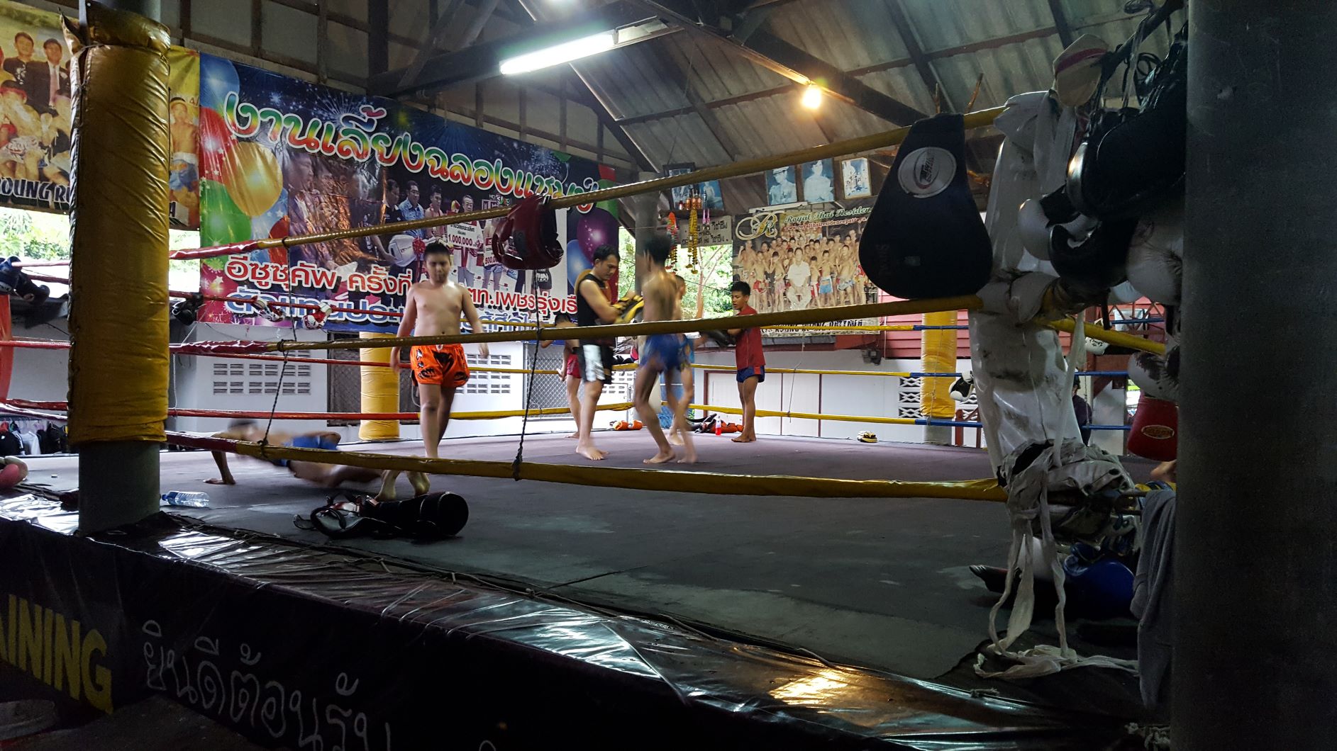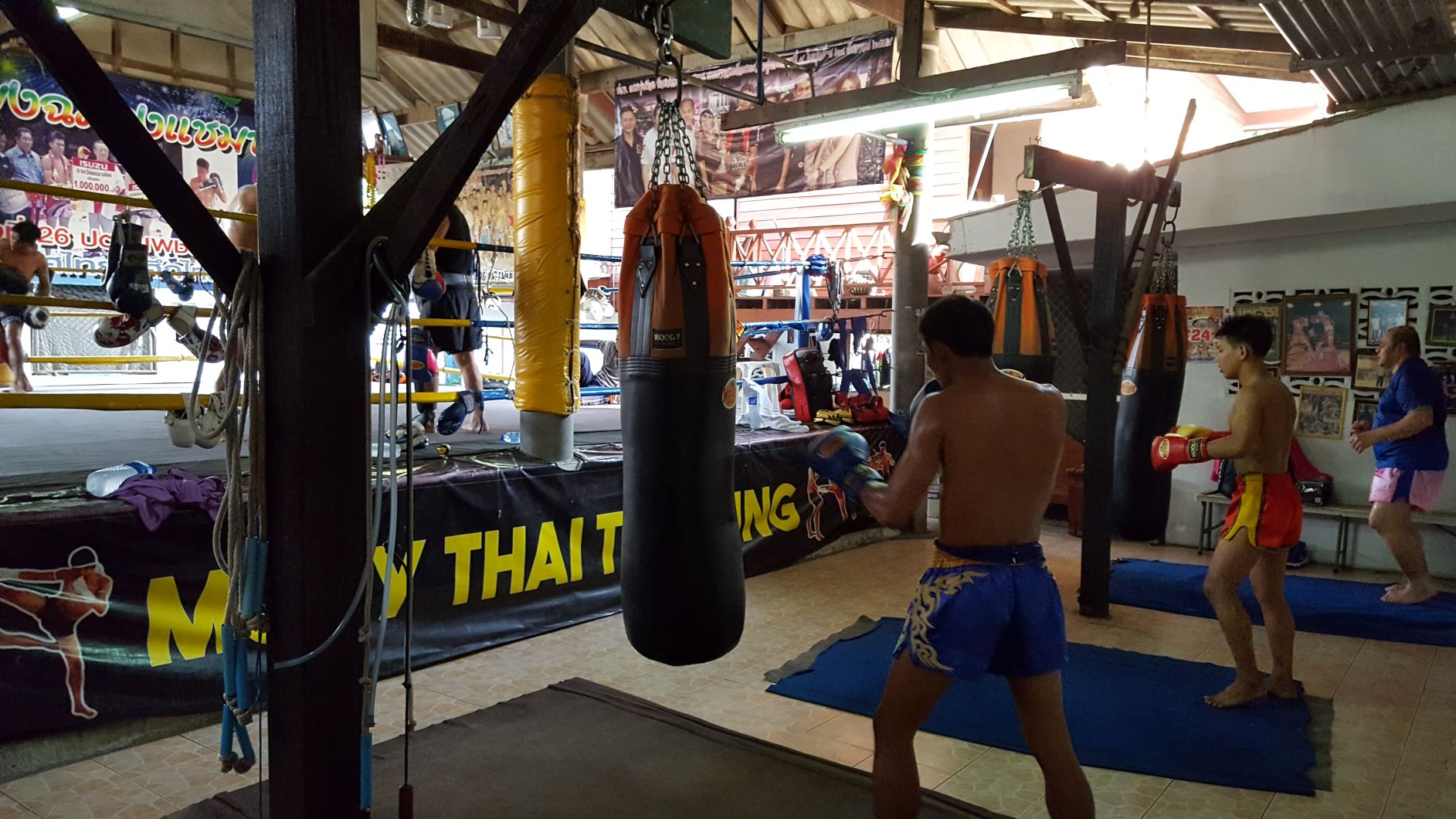 Petchrungruang is a traditional muay thai gym in Pattaya, established in 1986. It is located in an alley off of the main (Sukhumvit) road in southern Pattaya. If you are driving from the south, you should see a sign for the gym at the intersection of the alleyway and road. Similar to Keatkhamtorn gym, the gym raises children from a young age to become stadium fighters. The gym definitely has a family/close knit atmosphere. I first heard about this gym from Sylvie von Duuglas-Ittu, who trains here. While I was in Pattaya, I would often do morning sessions at Winner Muay Thai then head over to Petchrungruang in the afternoons. The training was tough and there were many strong younger thai fighters there. There were also a fair share of foreigners of differing backgrounds/experience, mainly Russian and Italian. The afternoon training started at around 3pm. I'd arrive, pay for my session then set my stuff in the weightroom which was adjacent to the main training area containing the bags and rings. The gym contained 2 rings (one main and one smaller), a couple of heavy bags, tires, and other various training gear. The main area is in a somewhat open air environment but the weight room is mostly enclosed. The weight room also included a matted area, which served as a warmup/cool down space. It was the perfect place to apply some nanman muay oil (hot and stuffy). I would begin the session with some shadowboxing, jumprope, and tire jumps. Then I would grab any available bag, waiting for a trainer to call me up for padwork. Padwork was either with Kru Nu (the owner) or Kru Den. I often went with Kru Den. He kept it pretty basic, but it was exhausting. Something about the way the trainers held the pads; you would really have to kick with good technique and follow through with each strike to feel a good impact. I usually got 3-4, 4 min rounds. Afterwards was usually clinching. Like other traditional thai gyms, clinching is emphasized and the clinching sessions are long. All the boys I clinched with were very strong and had incredible clinch locks. The sessions usually ended with some conditioning such as pushups, situps, and pullups. Occasionally the gym would do these "mock" fights, which consisted of 2 fighters sparring at nearly 100% (with large gloves/shinpads). They would try to recreate the atmosphere of a real fight by having corners, a referee, gamblers and audience members. It would get pretty wild and was very entertaining to watch. I could definitely see the benefit of this for those having upcoming fights. Overall, if you want an authentic training experience in Pattaya, I believe Petchrungruang would be a good choice. The training is intense but they cater to everyone; from fighters to those looking to get in shape. Most of the younger fighters were fighting on Lumpinee/Rajadamnerm cards, and some of the foreigners there were fighting on MAX. However, if you are a larger fighter, one thing to note is the majority of thai fighters there were probably around 65 kg and less. Nonetheless, you could get some very good training in.