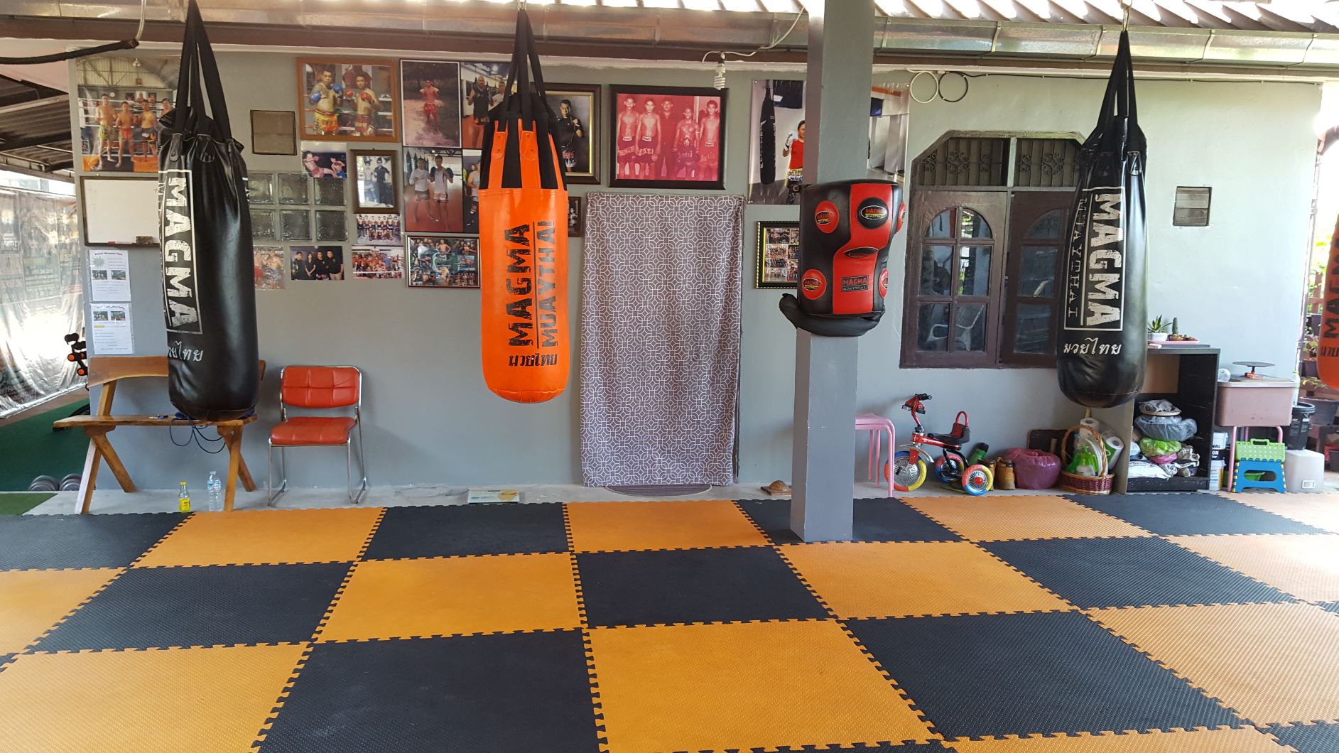 Winner Muay Thai is a newer gym in Pattaya. It is run by Luktum (Tum) Sityodtong (now Winner Muay Thai) and Kru Noi Sityodtong. It's located not too far from Sityodtong Camp, about a 5-10 motorbike ride away in the outskirts of Pattaya city. I first heard of Tum when he began fighting in the American promotions such as Lion Fight (vs Gaston Bolanos) and Triumph Kombat (vs Onjen Topic). Apparently he is/was pretty active in promotions around the Southeast Asian/Oceanic region. The gym is an extension of Kru Tum's and Noi's home. It's a family atmosphere, and you'll see Tum's wife and kid occasionally roaming around the mats. Everything is relatively new and clean. The gym seems more or less unknown at the moment; only one other student from Australia was there when I showed up. I opted to do morning sessions at Winner then afternoon sessions at Petchrungruang or Sityodtong. The morning training starts at around 8am. I would get some km in a park nearby before showing up for training. Tum would sometimes be running with the other student as I arrived. Training began with a warmup of either tire jumps or rope skipping. Then shadowboxing would commence. Tum was observant and gave pointers/things to focus on for each session. Next would be a couple rounds of bagwork (mainly alternating kicks, skip knees, and teeps). After bagwork came 5 rounds of pads with either Tum or Kru Noi. Padwork was always fun with Tum. He is high energy and has some tricky techniques in his arsenal. A lot of fakes and defensive maneuvers. Similar to Sityodtong gym, the first three rounds usually included all techniques while the last two rounds focused on clinching/knees or boxing/low kicks. Afterwards Tum would show us some techniques to drill on and sometimes spar/clinch with us. He is a beast in the clinch. Overall, I enjoyed training at Winner Muay Thai. It was like getting a private with Tum every session. He has a wealth of knowledge and a cool style. His style seems to incorporate more footwork and boxing than traditional muay thai. I recommend this gym for people looking for more individual training sessions, and if you want to train with Tum. Since it is relatively unknown at the moment, you won't get much sparring/clinching partners. Kru Tum and Kru Noi sometimes stagger the training sessions because they are the only trainers and can handle only 2-4 students at a time. The gym also seems to cater to the local community. If you're looking for an "traditional" muay thai camp or a "fighters" gym, this gym likely isn't for you, but if you prefer more individualized attention and want train with a great fighter like Tum, it's worth a visit.